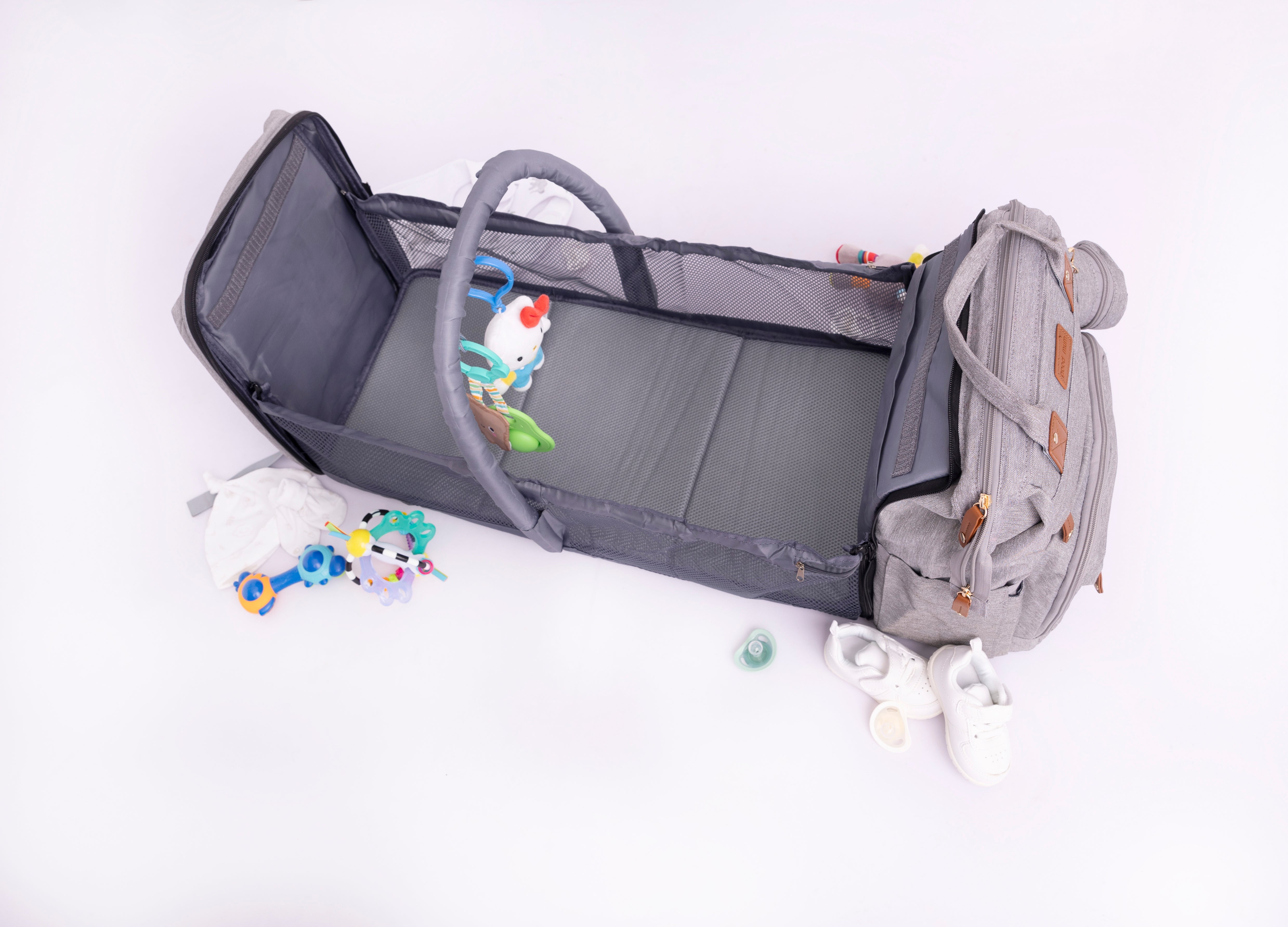 Travel with ease knowing your baby is cozy and secure. Our Nappy Bag features a built-in baby bed, mosquito net, and shade cover, ensuring comfort and convenience every step of the way. Watch how we redefine travel for modern families.