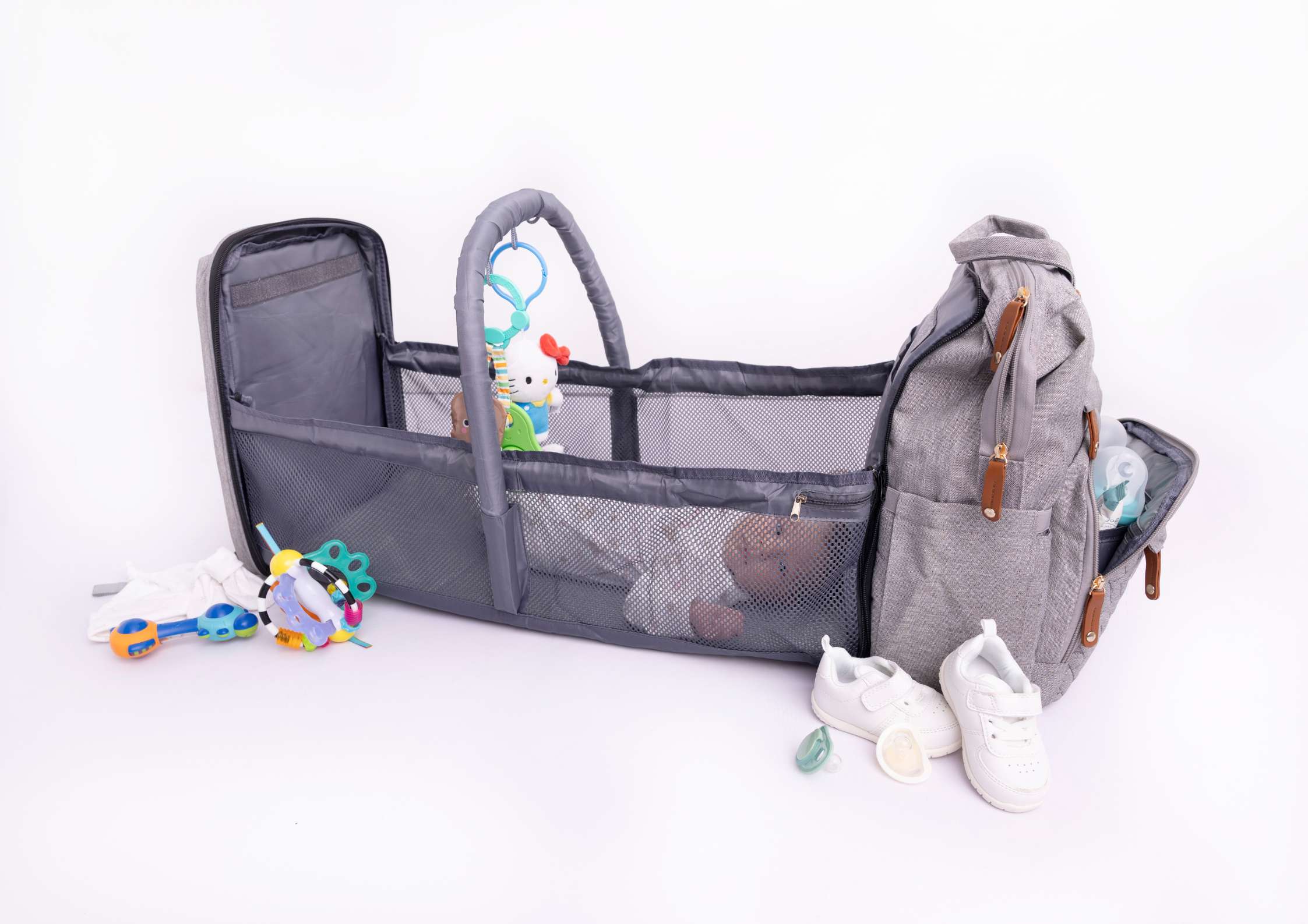 Travel with ease knowing your baby is cozy and secure. Our Nappy Bag features a built-in baby bed, mosquito net, and shade cover, ensuring comfort and convenience every step of the way. Watch how we redefine travel for modern families.